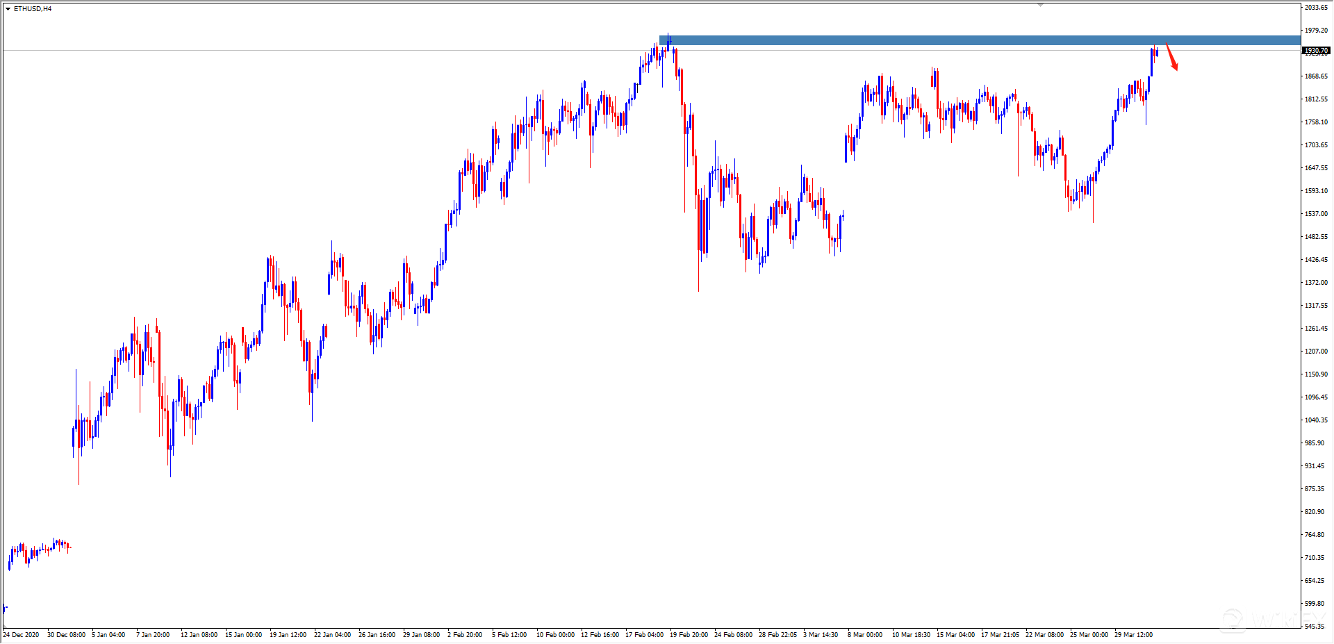 【技术点评】:H4周期,以太坊被带动起飞,当前价格即将测试前高关键阻力位。