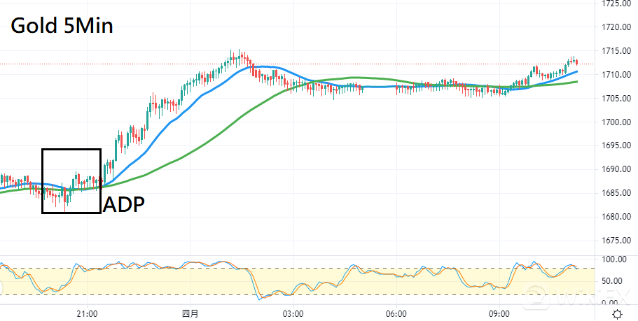 数据方面,昨日美国“小非农”ADP就业数据录得51.7万人,略低于预期的55万人,而数据表现较差也刺激了金价反弹,自1680附近回升至1715,收复先前失地。