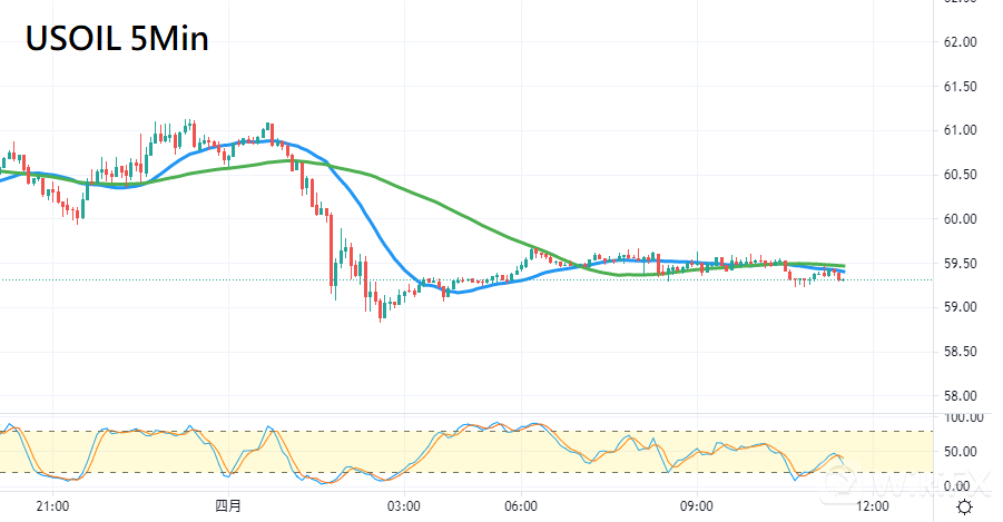 美油5分钟图-技术指标和参数:20MA、60MA、KD(9,3,3)