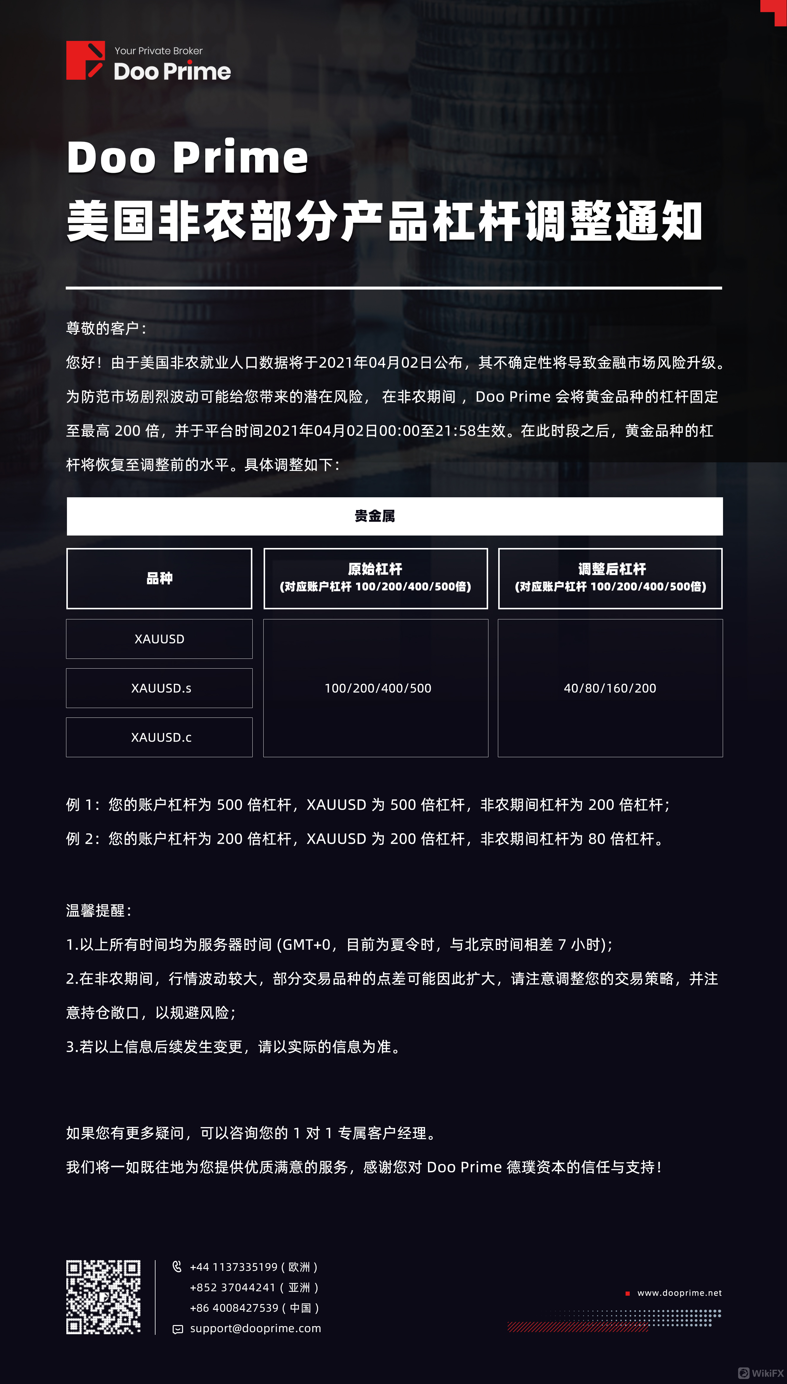 德璞资本:Doo Prime 美国非农部分产品杠杆调整通知