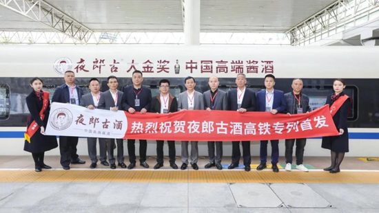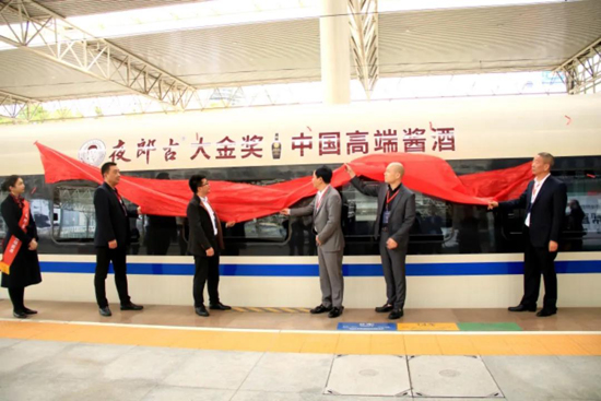 3月31日上午10:55分,由贵州夜郎古酒业装饰一新的夜郎古酒号列车缓缓出发,此后一年,它将带着中国高端酱酒黑马品牌讯息,往返于祖国西南的成都和华南的广州。