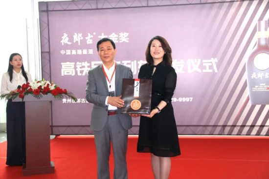 刘中林总经理就夜郎古酒号列车发车进行了致辞,刘中林表示,今年不仅是贵州夜郎古的“十四五”开局之年,也是夜郎古的豹变之年。而夜郎古酒高铁专列的的出发,仅仅是其中一个华章,随着酱酒热的持续发酵和企业的“十四五”强劲推进,我们将看到中国高端酱酒黑马品牌——贵州夜郎古酒在更多地方、更多场景的更多精彩、更多绽放。