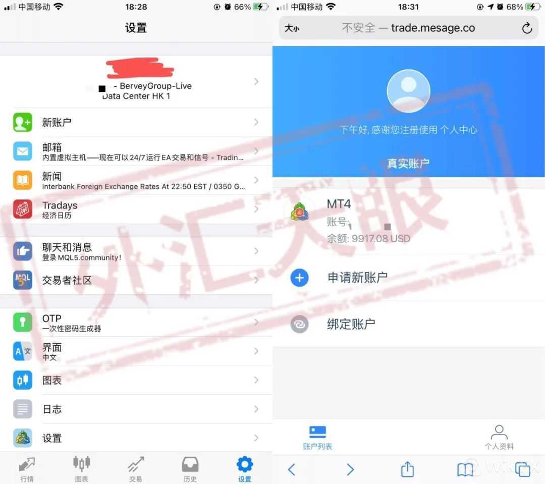 高先生所提供的开户入金平台就是https://www.mesage.co/,但是该网站现在已经无法。不过高先生MT4上显示的服务器是BerveyGroup-Live ,这个服务器属于是在外汇天眼上BERVEY(官网:https://bervfx.com)。