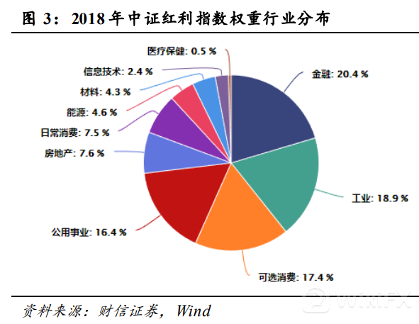 高股息板块的构成是什么样的呢?以2018年的中证红利指数的权重行业分布来看,金融、工业、可选消费和公用事业四个板块便占据了73.1%。所以周期行业的回暖将促使高股息高分红板块的集体活跃。