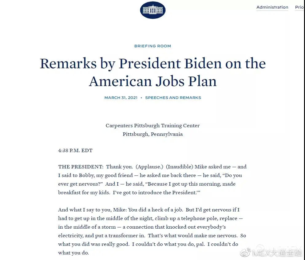 “这是美国一次千载难逢的投资”,继1.9万亿的新冠纾困法案之后,美国总统拜登3月31日又再度出手,宣布推出一项耗资高达2万亿美元的“撒钱”计划,规划了美国未来8年的具体基建和加税计划,旨在重振美国的交通基建和制造业,改善美国芯片、能源等领域的地位并保持竞争力。