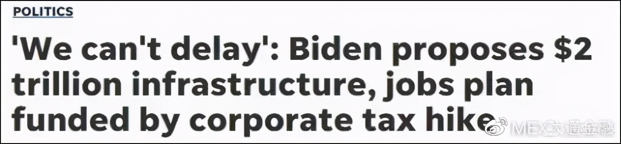美国国会预算办公室先前预估,2021财年联邦财政赤字或达2.3万亿美元,如果算上3月通过的1.9万亿美元经济救助计划,这一数字可能再增加1.16万亿美元。上述耗资巨大的基建计划预计将进一步加重联邦政府的债务压力。