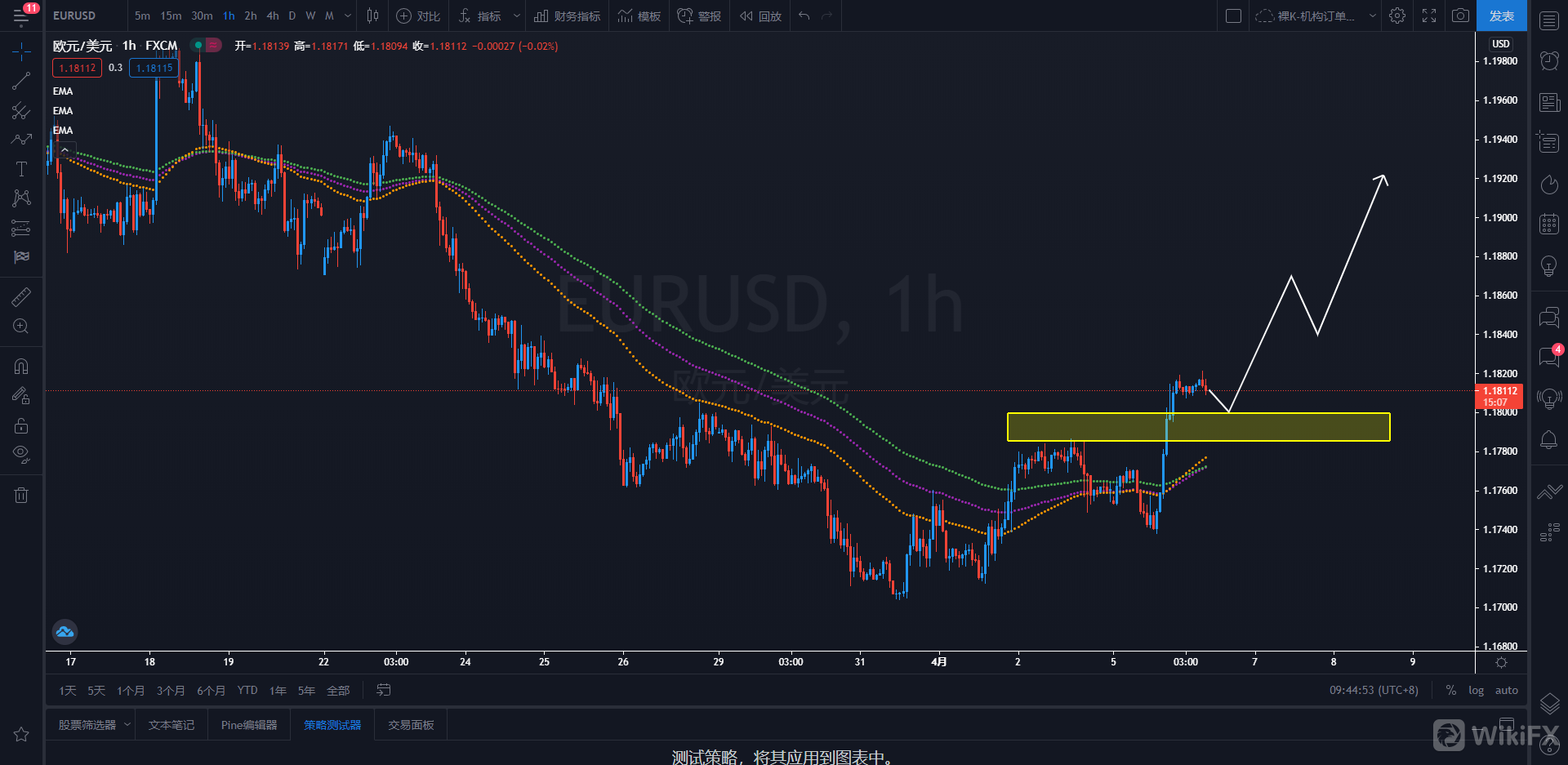 策略解析:欧元小时级别开始出现底部形态,并且价格已经开始站稳均线系统,后市或将继续反弹上行,以逢低买入为主。日内关注价格再次回踩1.1800-1.1785需求区的机会,可择机逢低买入欧元,依次上看目标1.1840、1.1920一线附近。