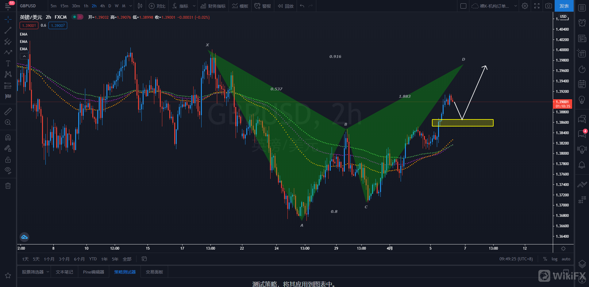 策略解析:英镑小时级别依然处于大级别的震荡走势之中,但是小级别可能价格在回踩修正后,还是会去完成潜在蝙蝠模式,短线可博弈逢低买入英镑。日内关注价格再次回踩1.3865-1.3852需求区的机会,可择机逢低买入英镑,上看目标1.3970一线附近。