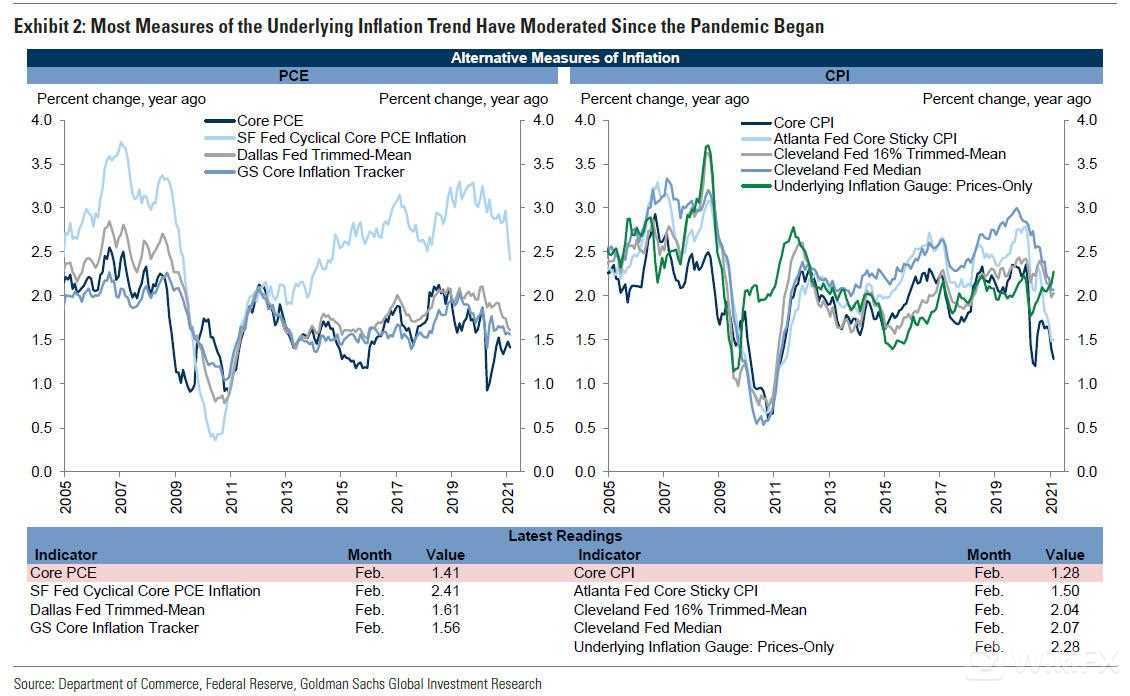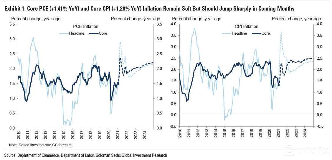 在CPI数据方面,Hatzius认为尽管2月份的核心个人消费价格指数(PCE)同比涨幅为1.41%,核心CPI同比涨幅为1.28%,但在基础效应的推动下,未来几个月的同比涨幅应该会大幅上升。