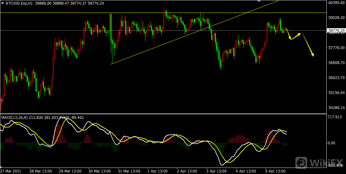 从比特币1小时图来看,比特币目前大概率还要在60000大关之下震荡回落,只是幅度大小的问题,如果未来是小回落,目前即是四小时级别的收敛极限,如果是回落幅度破掉周一低点,则未来的收敛会向后伸长一些。