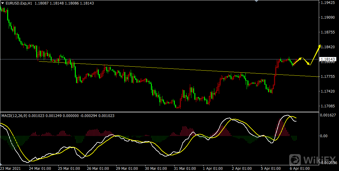 从欧元兑美元1小时图来看,欧元兑美元昨天较预期中的反弹要强很多,这里继续做多,未来以一小时级别的顶背离或者关键低点的下破为信号结束整个反弹。