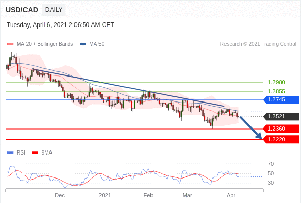 在 1.2745 之下,看跌,目标价位为 1.2360 ,然后为 1.2220 。