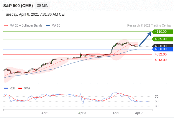 在 4050.00 之上,看涨,目标价位为 4085.00 ,然后为 4110.00 。