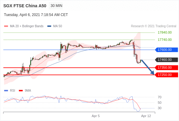 在 17600.00 之下,看跌,目标价位为 17350.00 ,然后为 17250.00 。