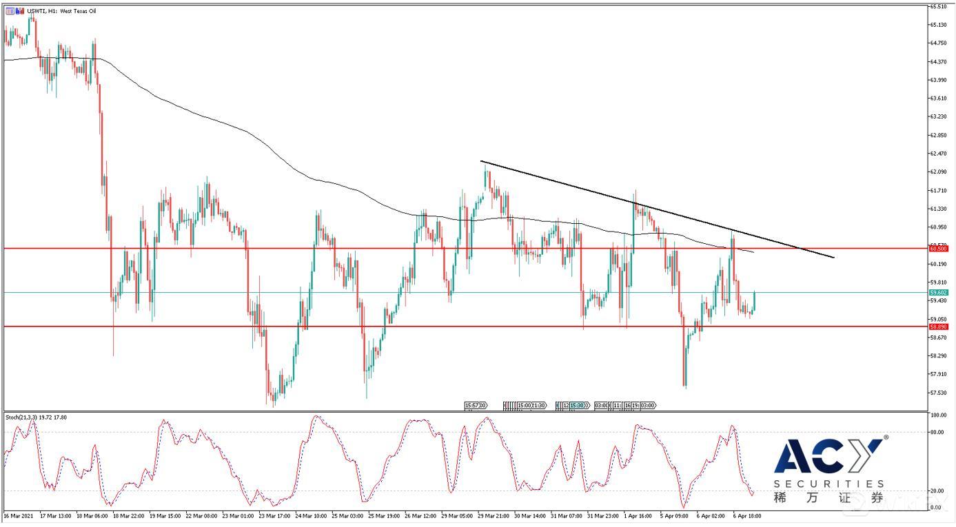 WTI美油一小时图