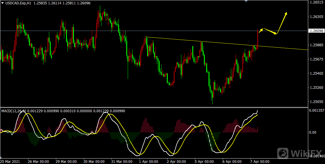 从美元兑加元1小时走势来看,美元兑加元已经有连续上涨的情况下,在压力位拉出更大的阳线出来,这极可能会是最近反转的信号,目前阳线但是关键位,只要回踩在其之上,便是多头。