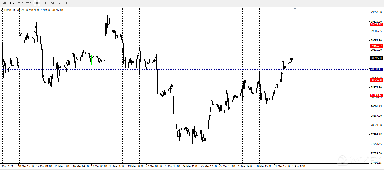 上周四(4月1日)截至收盘,恒生指数涨560.39点或1.97%,报28,938.74点,全日成交额达1,782.53亿。国企指数涨2.24%,报11,217.41点;红筹指数涨0.03%,报4,103.17点。