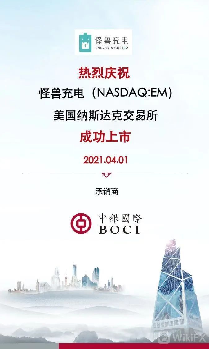 2021年4月1日,中银国际作为承销商协助中国智能共享充电宝公司SmartShare Global Ltd.(以下简称“怪兽充电”,股票代号NASDAQ:EM)在美国纳斯达克交易所成功上市。怪兽充电是中国共享经济行业的首家上市公司,并成为国内“共享充电宝上市第一股”。这也是中银国际自2019年12月作为怪兽充电C轮融资时新引入的唯一国资背景投资人后,与怪兽充电的又一次成功合作,为促进怪兽充电的稳健发展发挥了重要作用。本次怪兽充电的发行价为8.5美元/美国存托股(“ADS”)。上市当日,怪兽充电开盘价为10美元,较发行价上涨17.6%,按照开盘价计算,怪兽充电市值24.9亿美元。