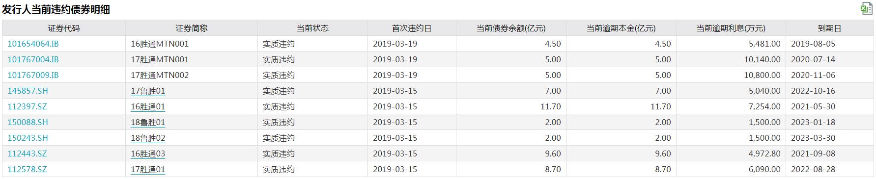Wind数据显示,截至目前,山东胜通集团发行的债券已有9只违约,包括:16胜通MTN001,17胜通MTN001,17胜通MTN002,17鲁胜01,16胜通01,18鲁胜01,18鲁胜02,16胜通03,17胜通01。这9只债券当前逾期本金累计达55.5亿元。