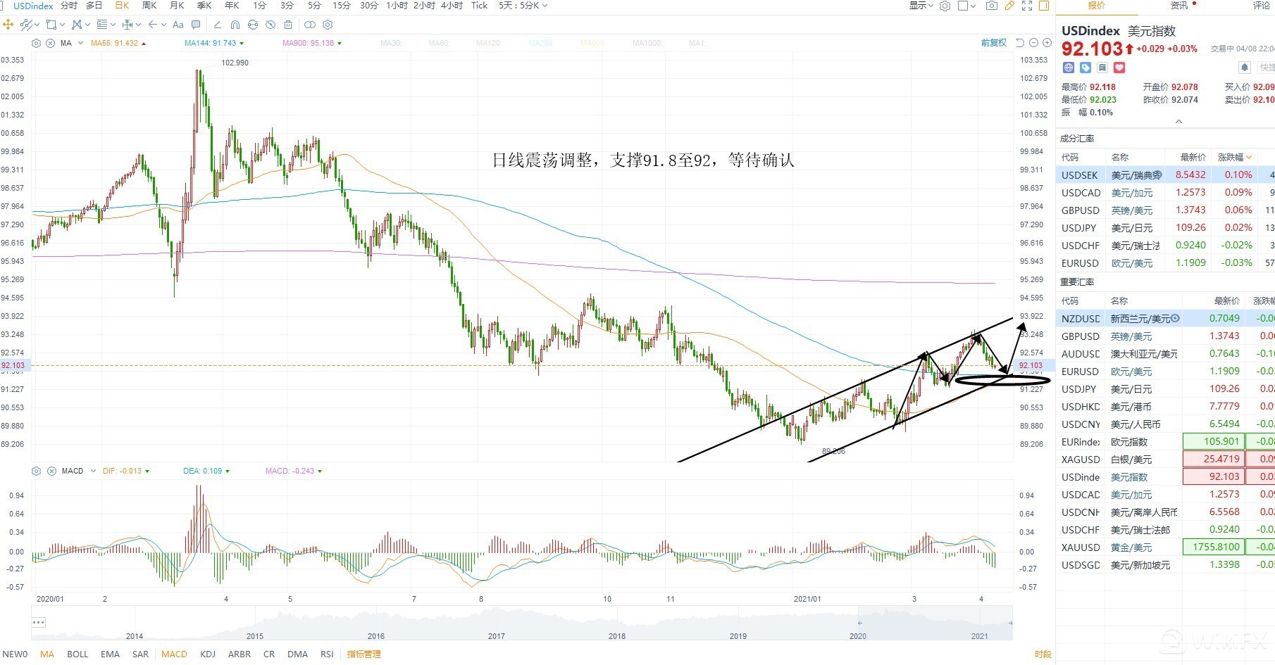 美元昨日跌至两周低点,鲍威尔重申宽松的言论,提振市场风险偏好,打压美元,而美债也是同步下行过程中间,所以非美也好,风险资产也好,同步向上,目前市场基本面偏向于宽松,所以美元要出现大幅度反弹的可能性不大,从技术层面来看,美元接近多空分水岭之际观察是否止跌企稳,出现反弹,对于大部分品种而言,都是震荡区间不存在趋势的节奏,以高抛低吸为主,日内注意美元指数92至91.8区间支撑是否有效,若守住,则存在反弹的可能性