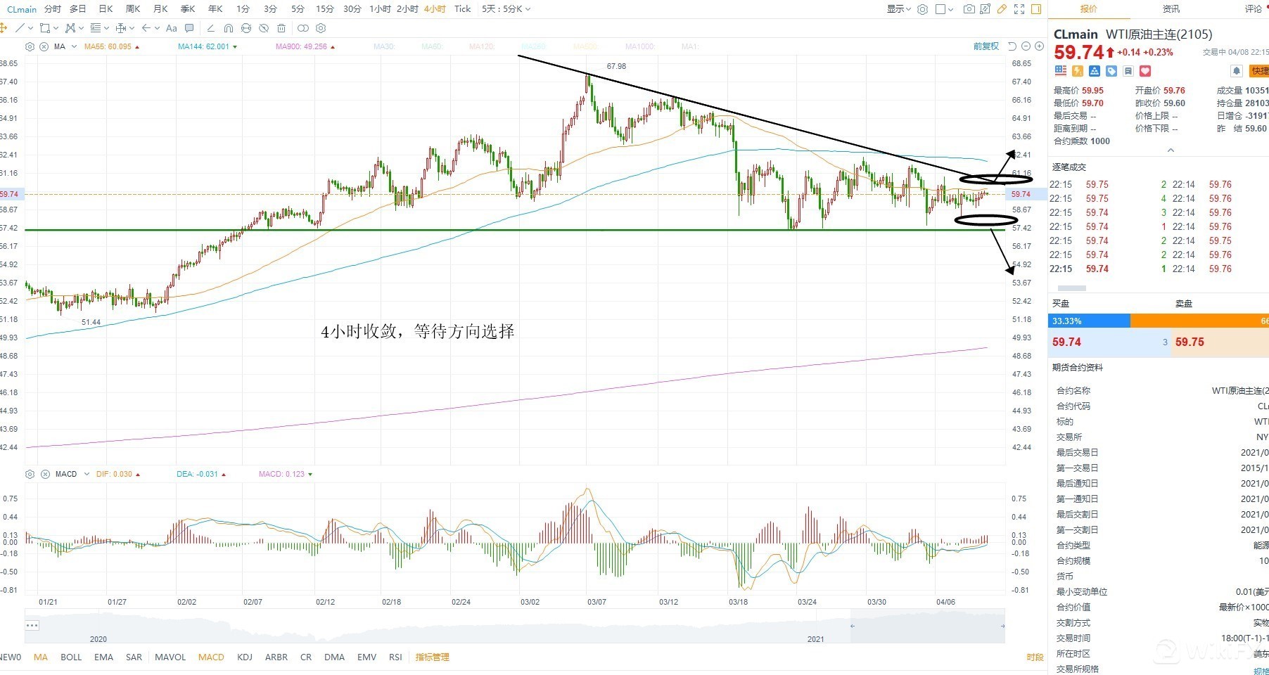 美原油继续低位盘整,收敛的态势很明确,不过基本面的影响上不算很大,主要是市场对于需求端的不确定性产生了担忧,因此打压了油价,而技术层面也有修正的需求,那么对于美原油而言整体价格偏向于收敛之后选择方向,大结构上多头还没有走完,因此关注低位做多的机会,技术层面而言4小时压力60.3突破则有希望重拾升势,下方支撑58.3,日内以震荡对待