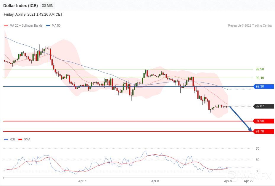 交易策略:在92.3000之下,看跌,目标价位为91.9000,然后为91.7800。