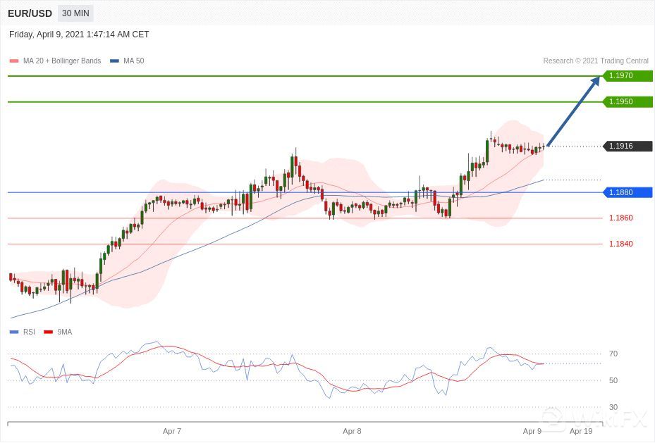 交易策略:在1.1880之上,看涨,目标价位为1.1950,然后为1.1970。