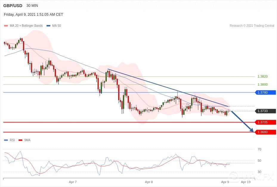 交易策略:在1.3780之下,看跌,目标价位为1.3705,然后为1.3680。