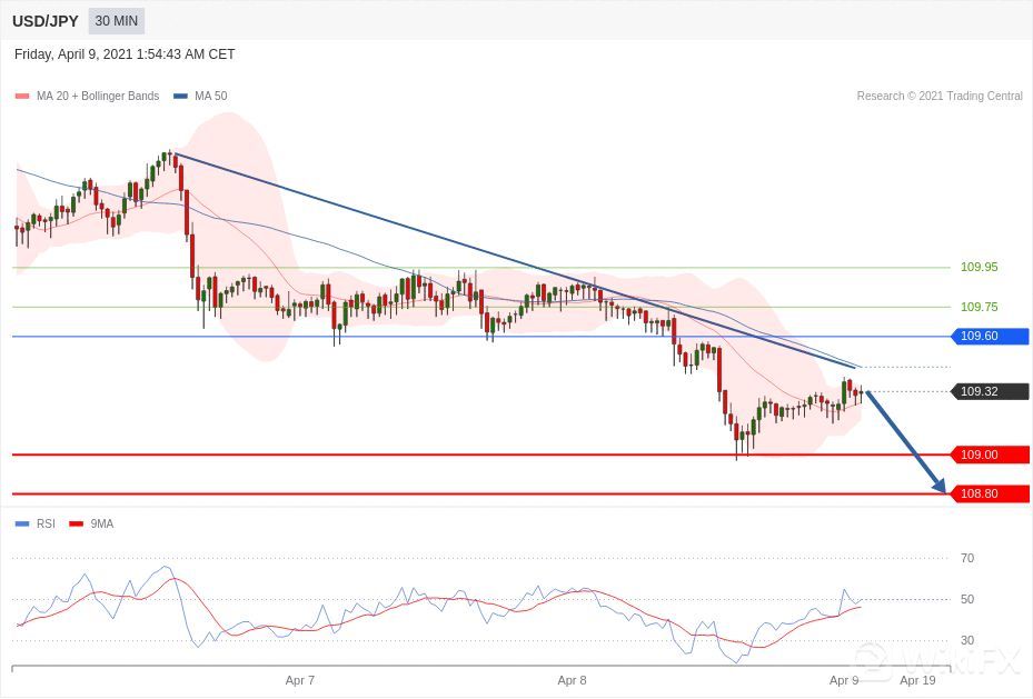 交易策略:在109.60之下,看跌,目标价位为109.00,然后为108.80。
