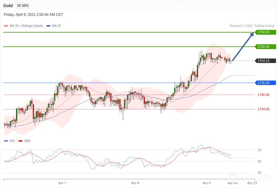 交易策略:在1745.00之上,看涨,目标价位为1760.00,然后为1766.00。