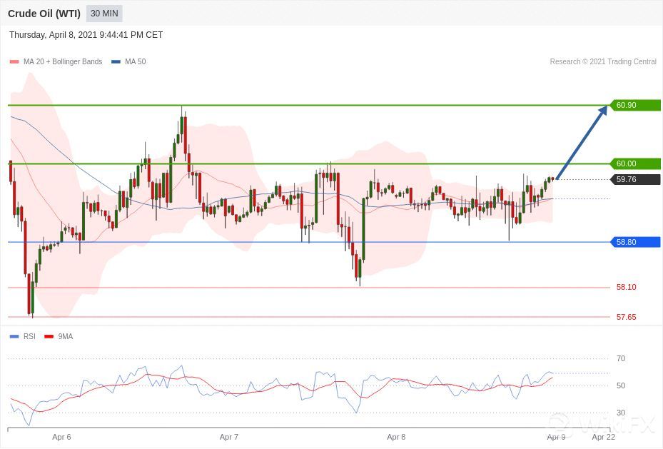 交易策略:在58.80之上,看涨,目标价位为60.00,然后为60.90。