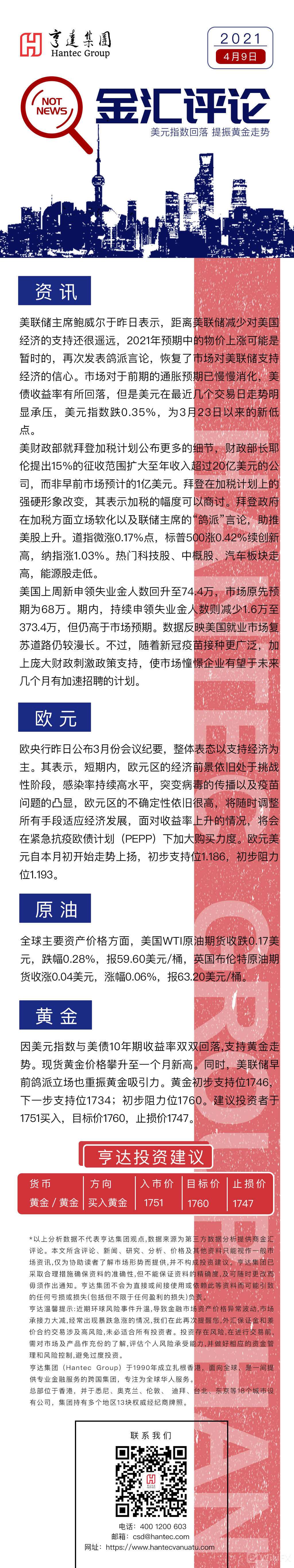 亨达国际金融:亨达金汇评论2021年4月9日