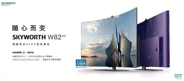 创维W82是创维电视在技术上的又一次大胆革新,借助创维变形OBMTM技术和鱼鳞态伸缩后壳,其实现了OLED电视1000R曲直智能调整,首创了OLED电视新形态。作为创维首台OLED变形电视,极具人性化的科技设计,使得创维W82更加贴合消费者的观看需求,OBM自制柔性屏体可以根据用户最佳观看距离及不同使用场景,自动适配最佳屏幕曲率,无论是观影还是游戏,都更为舒适灵动。