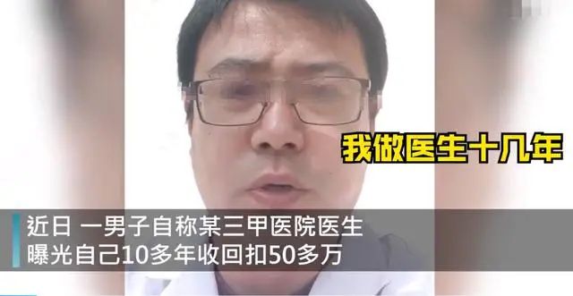 近日,一名自称某三甲医院医生的男子曝光自己10多年收回扣50多万,引发舆论轰动。该男子的社交平台主页可以看到,他曾多次发视频自曝收回扣。其表示,收受回扣一事自己和医院领导都在参与,他2018年就曾向纪委举报,为此遭到医院的打击报复。