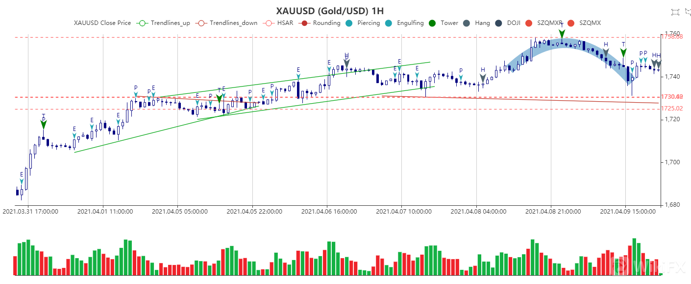5. 路透4月9日 – 金价周五下跌逾1%,受美国公债收益率跳升和美元反弹拖累,但周线仍有望录得三周来首次上涨。1744 GMT,现货金下跌0.7%,至每盎司1,744.07美元,周四曾触及3月1日以来最高1,758.45美元。本周上涨约0.9%。