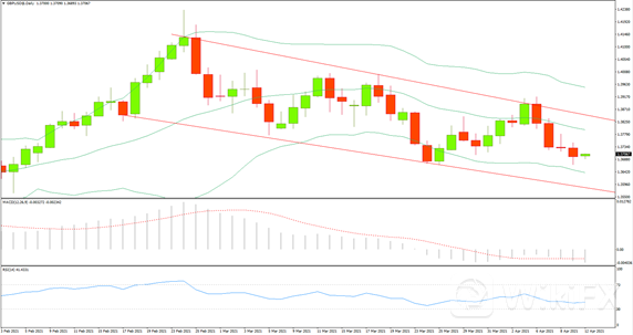 日线级别收出一根锤子阴线,价格在1.1892附近受到支撑,RSI偏向多方,回踩50轴线但未能下破,MACD下行动能趋弱。4小时级别跳空后回涨,未能跌破布林带中轨,RSI偏向多方,MACD走出顶背离,结合美指看涨预期,欧美走势可能将发生反转。今日空单建议在1.1920附近入场,止损设在1.1943,止盈在1.1873