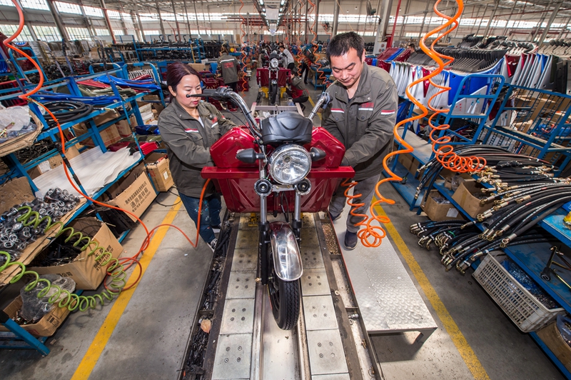 为进一步提升金融服务民营企业水平,河南平顶山银保监分局叶县监管组引导叶县农商银行提升服务质效、倾斜资源投向,为河南力帆树民车业投放贷款990万元,为其生产三轮摩托车注入金融“加速剂”。截至3月末,该企业已向尼日利亚、菲律宾、阿根廷等10多个国家出口三轮摩托车3万辆。图为力帆树民车业员工正在加班加点生产的情景。