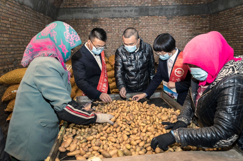 农行河北张家口分行积极扩大“惠农e贷”服务春耕备种范围,开发出“薯业贷”“甜菜贷”“彩椒贷”等特色信贷模式,有效满足农户备种资金需求。据了解,今年以来,该行已为219户农户授信7413万元,同时正在为232户建立信贷白名单。图为该行深耕乡村小分队在马铃薯种植户调研,了解种薯储藏及备耕资金需求情况。
