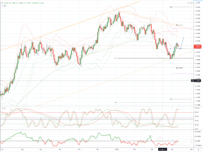 EURUSD 日内偏差 : 看跌下方1.1880看涨上方