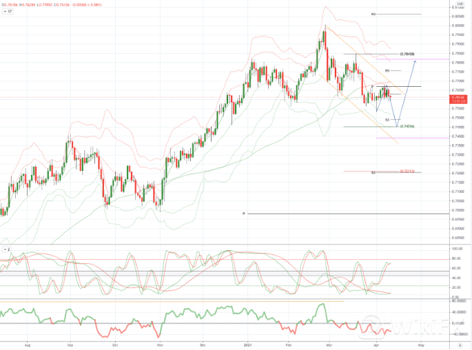 AUDUSD 日内偏差 : 看跌低于.7700,目标位于.7453