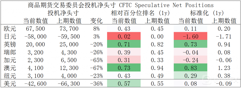 CFTC资金流数据显示,日元空头处于极值,因此,预计短期随着资金流入并支持其回涨,另外,澳元多头也处于极值。