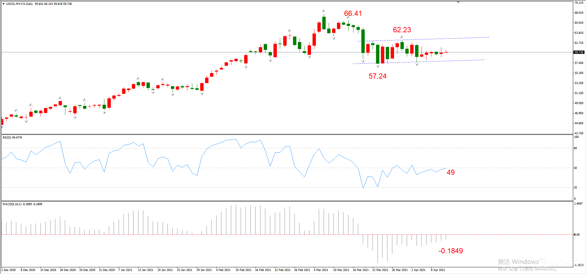 图5,USOIL 2021年5月合约,04月13日 日线周期-ATFX