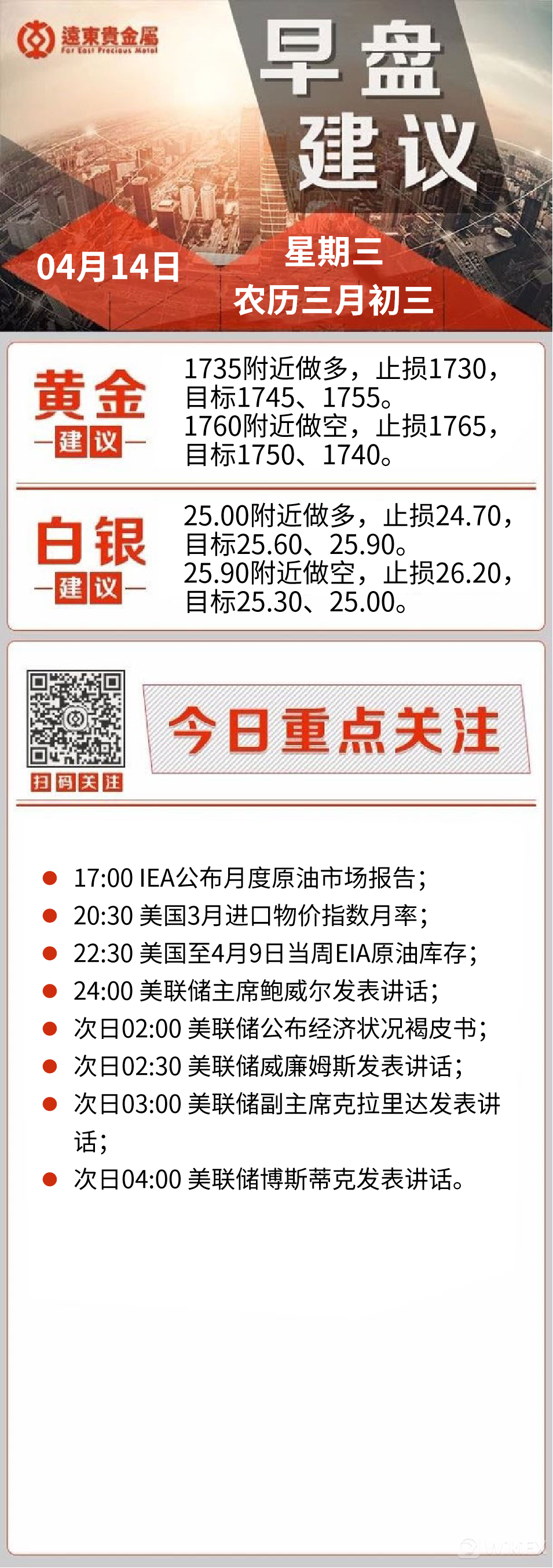展望日内重点关注晚间关注美国3月进口物价指数,预计环比将小幅低于前值1.3%,对市场影响相对较小。另外美联储将公布经济状况褐皮书,美联储主席鲍威尔和副主席克拉里达将分别亮相讲话,不出意外鲍威尔仍然将表态维持目前宽松政策不变。