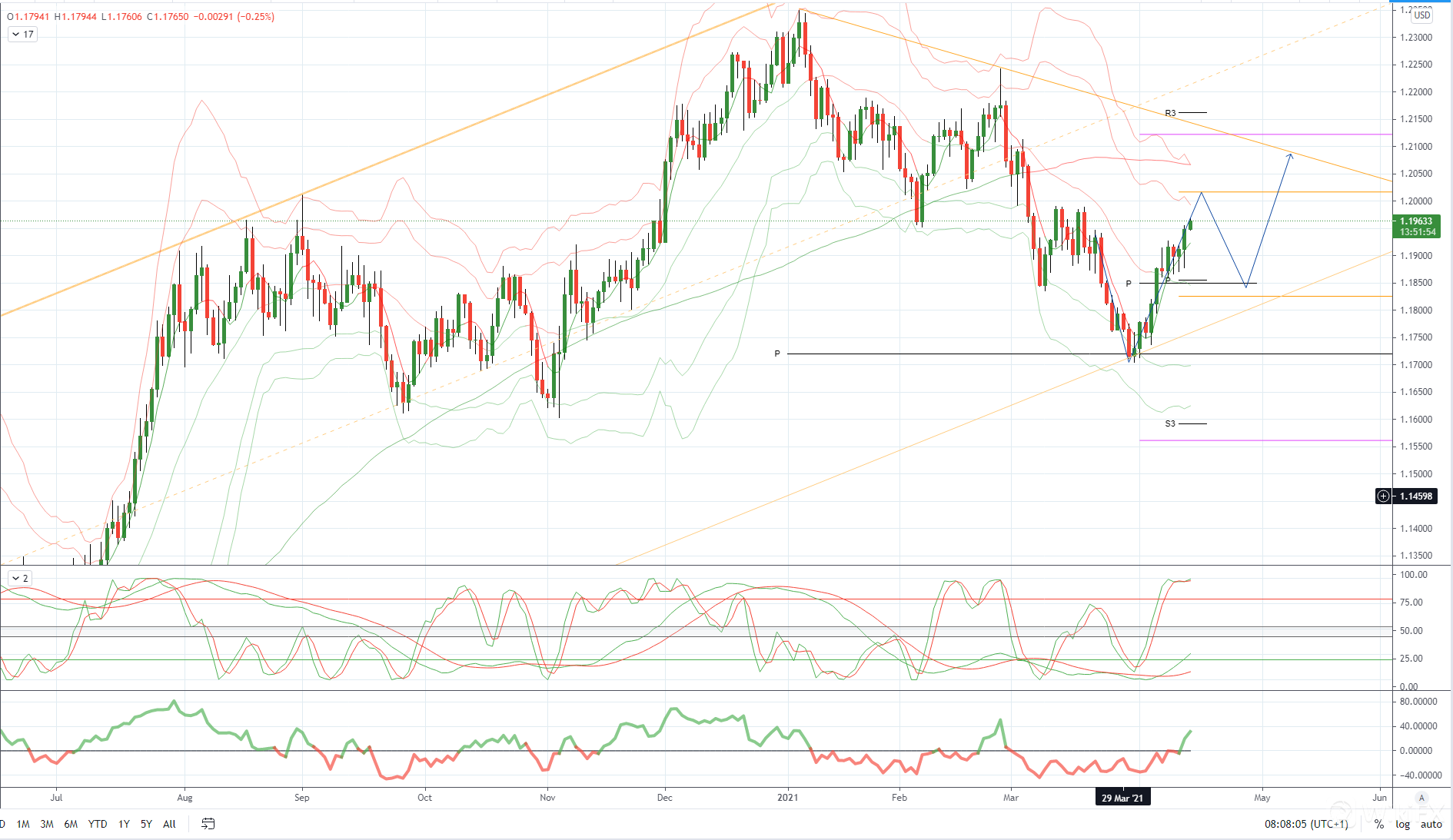 EURUSD 日内偏差: 看跌下方1.1880看涨上方