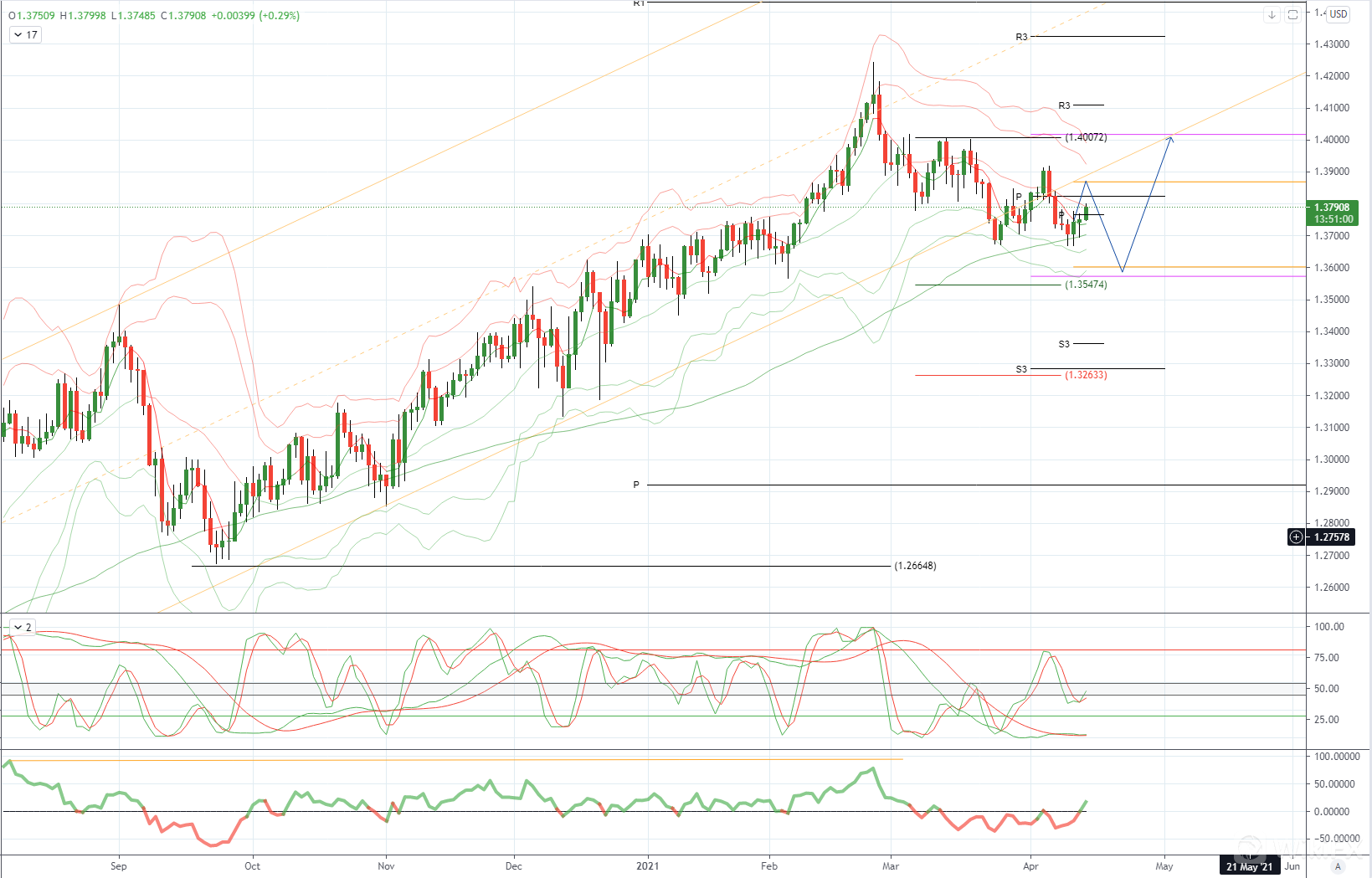 GBPUSD 日内偏差 : 上方1.3910看跌,下方看跌