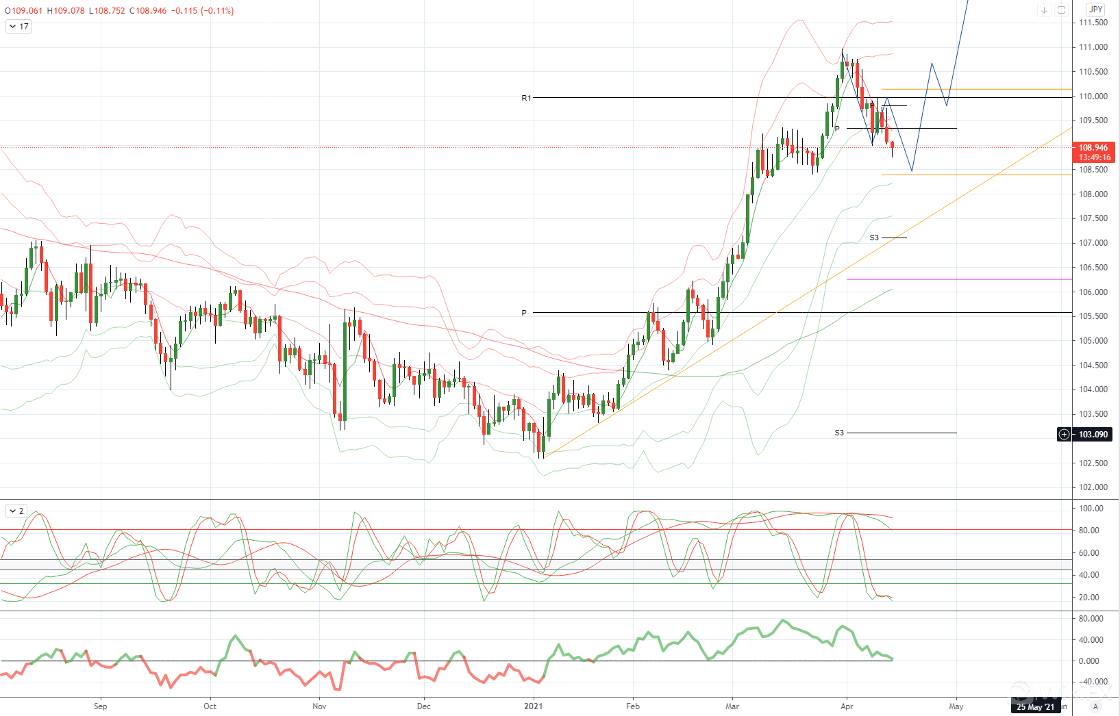 USDJPY 日内偏差: 高于109目标看涨112