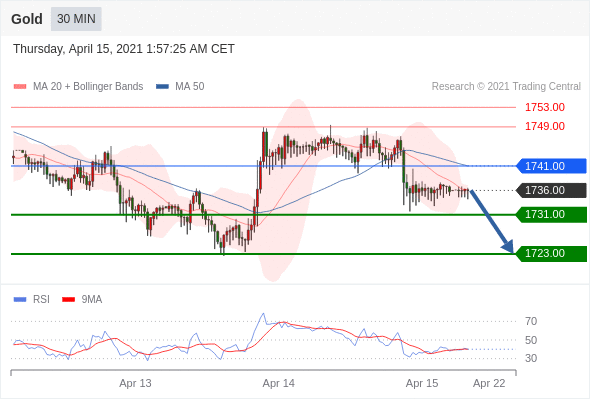 交易策略:在1741.00之下,看跌,目标价位为1731.00,然后为1723.00。