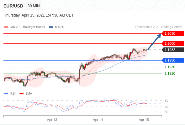 交易策略:在1.1950之上,看涨,目标价位为1.2000,然后为1.2030。