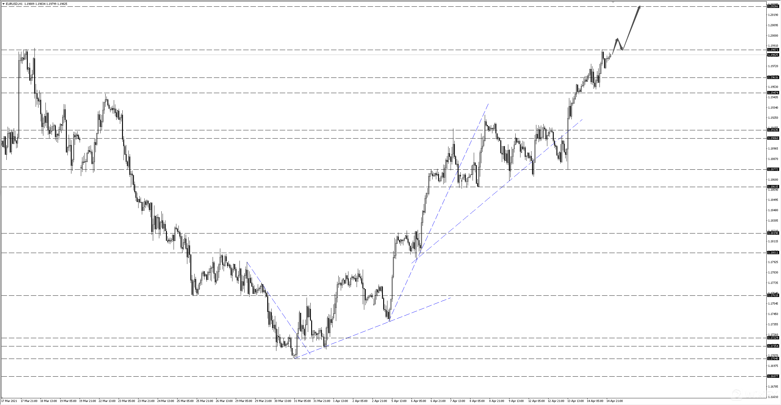 周三(4月14日)美元指数刷新近四周低点至91.57,因美债收益率持于近期高位下方,降低了美元的相对吸引力,包括高盛和摩根大通在内美国一些银行的强劲业绩降低了对避险资产的需求。鲍威尔表示,美联储正在等待价格和就业达到目标后再考虑加息,这也给美元带来压力,欧元兑美元触及3月18日以来最高水平1.1987。