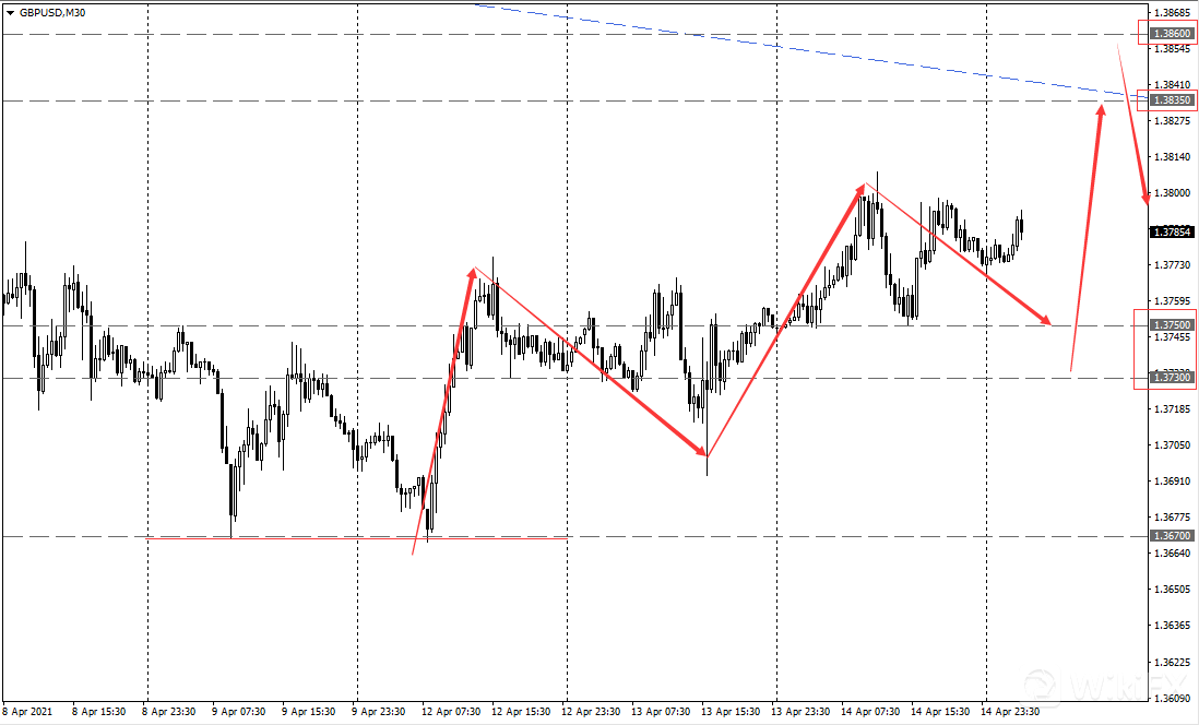 1H级别可以看出底部抬升,走短期上涨通道,短期回测支撑依然看涨。今日先关注1.3750附近或1.3730附近支撑多,博一波上涨日波幅;在1.3830附近或1.3860附近承压可试空,博一波冲高回落调整波幅。